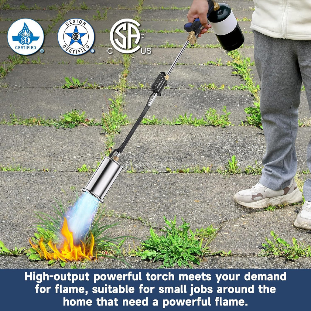 - 【Powerful Propane Weed Torch】Our Weed Flame Torch heats-up to 3600ºF with ease for a variety of High-Heat applications; and it can effectively burn away unwanted weeds in your lawn, flower beds, or along the cracks on your sidewalk and driveways.